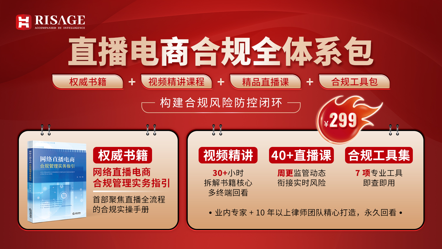 299 元直播电商合规全体系包,权威书籍 + 课程 + 工具,覆盖全流程,专家打造,构建风险防控闭环,实用高效!